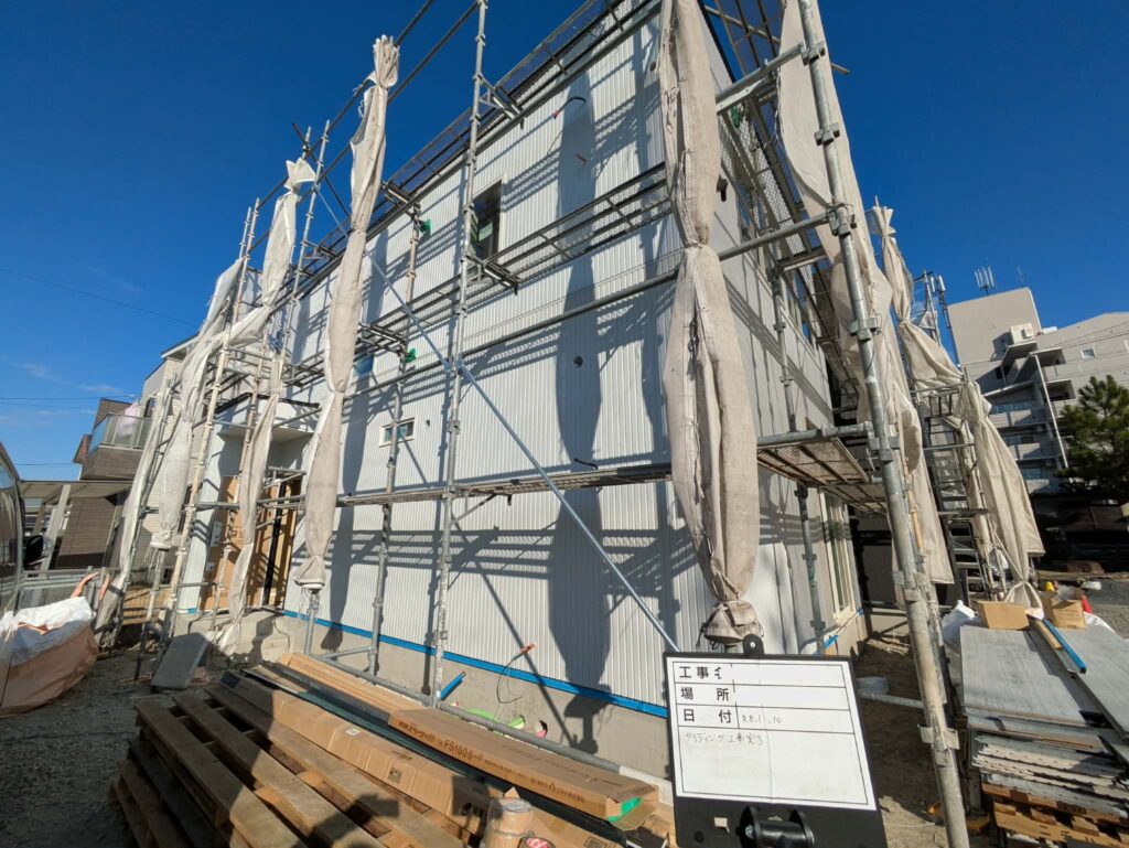 1/9 茜部分譲住宅 サイディング工事完了